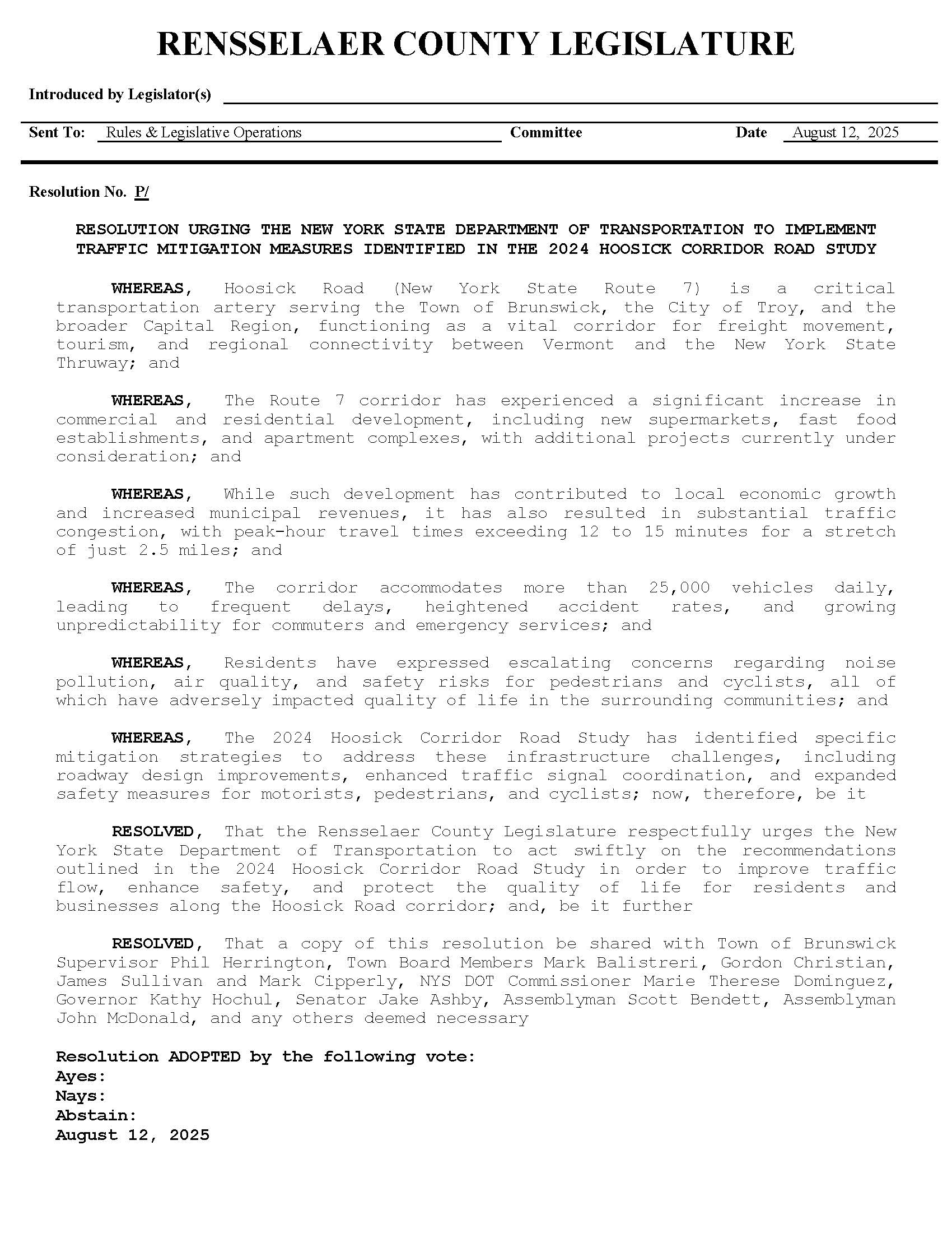 The Rensselaer County Legislature is composed of 19 members who represent more than 156,000 county residents. Legislators are elected at a general election on odd numbered years for a four-year term, and represent six legislative districts.